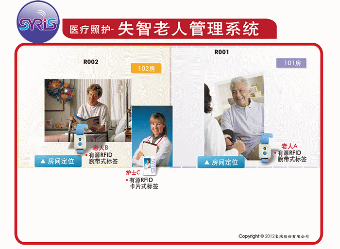 通过RFID特性,可实时掌控失智老人的切确位置,也避免躲在院内死角,以利管控。